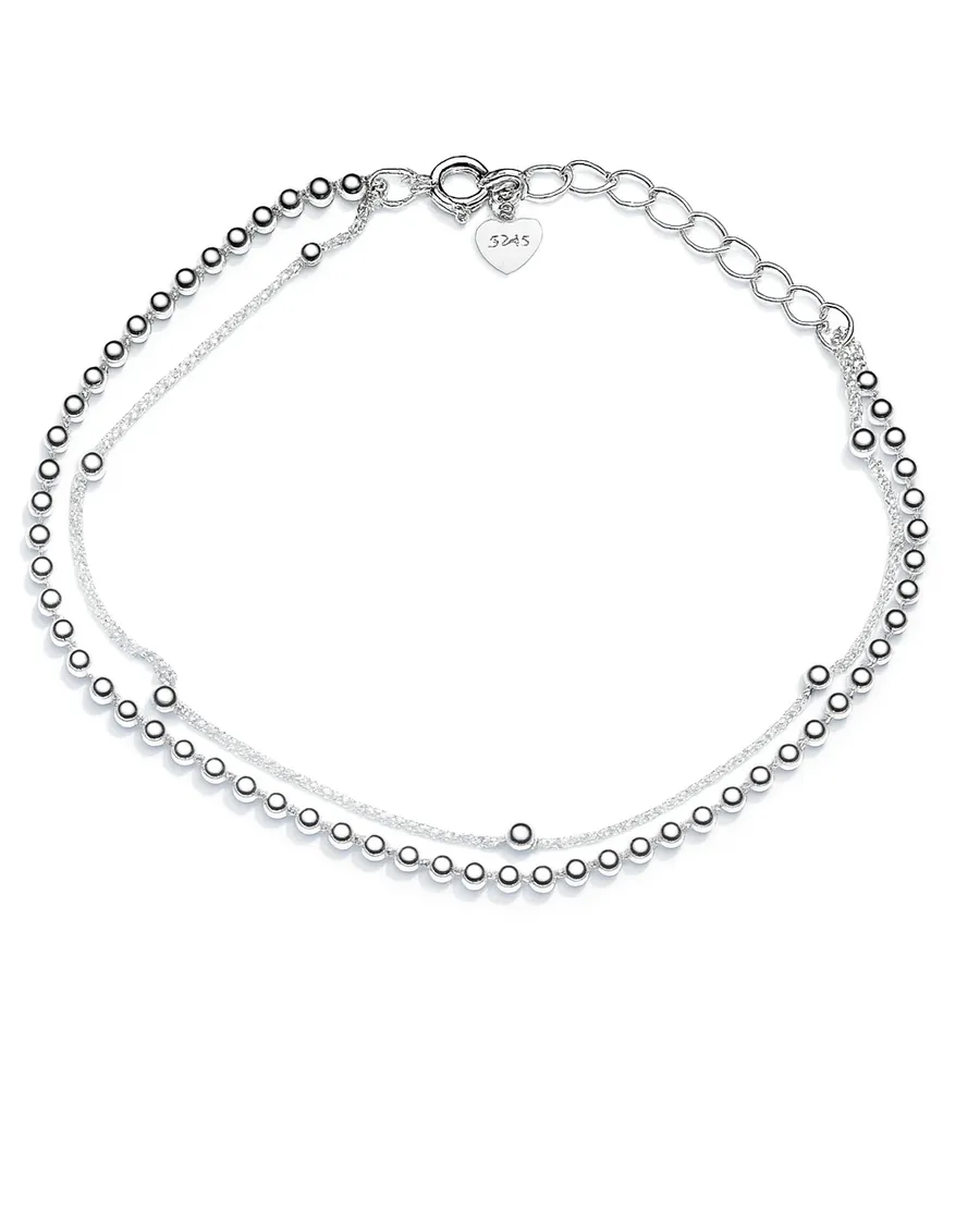 全銀雙串珠手鏈